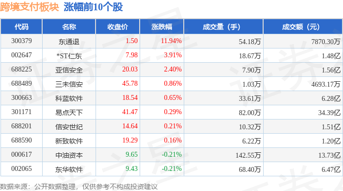 证券之星消息,1月7日跨境支付板块较上一交易日下跌1.37%,四方精创领跌。当日上证指数报收于4085.77,上涨0.05%。深证成指报收于14030.56,上...