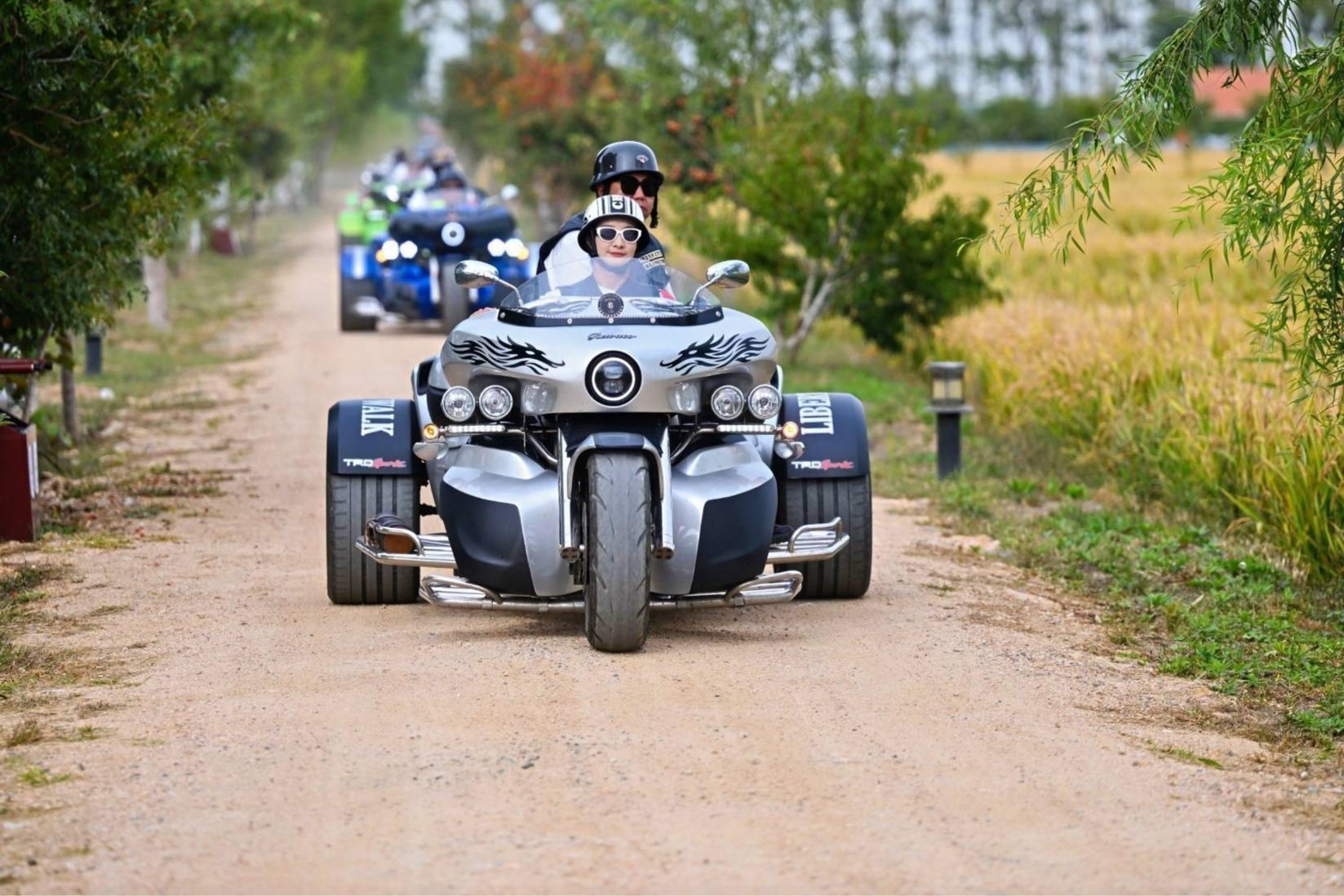 活动当天,由20余辆机车组成的队伍全程按既定线路有序行进,亮点十足,沈北旅游风光尽收眼底。车队自绿地铂瑞酒店出发,途经沈北路、辉山大街、四环路等路段平稳前行,首站抵达稻梦空间。主会场内,五彩斑斓的机车在锡伯门两侧整齐列队,骑手们身着炫酷装备,与周边金黄稻田相映成趣,成为秋日里一道独特风景线。启动仪式上,流程紧凑且仪式感满满,随着沈北新区委常委、政府副区长关镝宣布“十一”黄金文旅消费季正式启动,全体车手同步鸣笛,轰鸣的引擎声划破长空,标志着活动圆满开启。