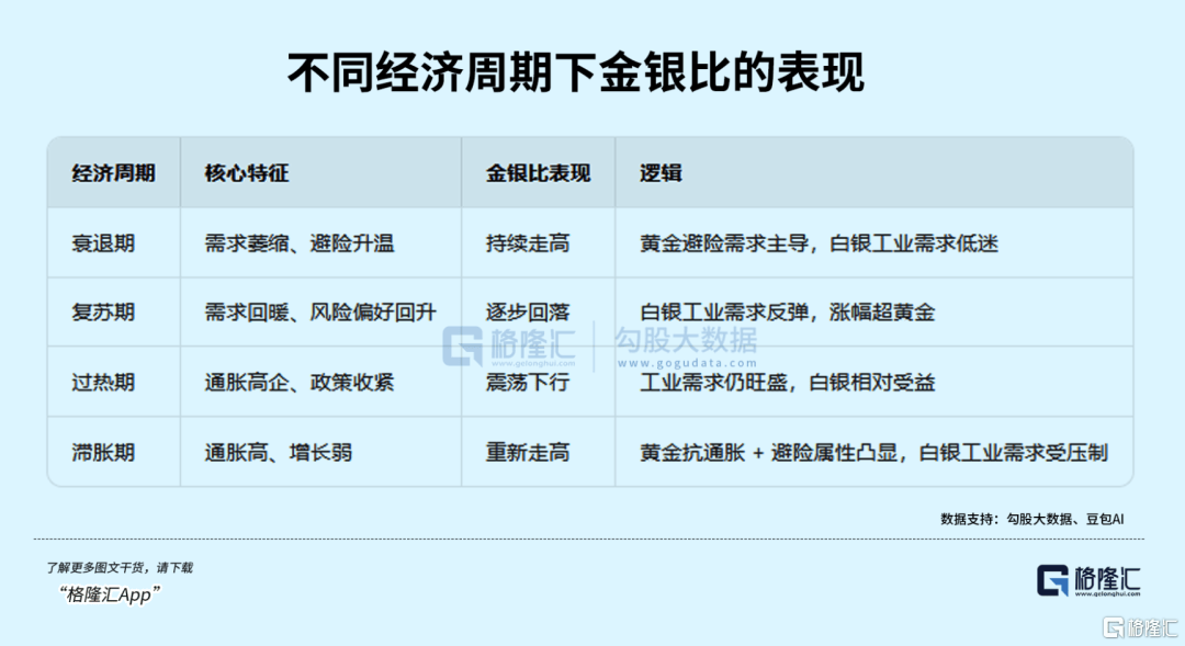 从这两个阶段的对比可见,黄金的“单一避险属性”和白银的“避险+工业双重属性”,决定了二者在不同经济周期、不同风险环境下的价格弹性差异: