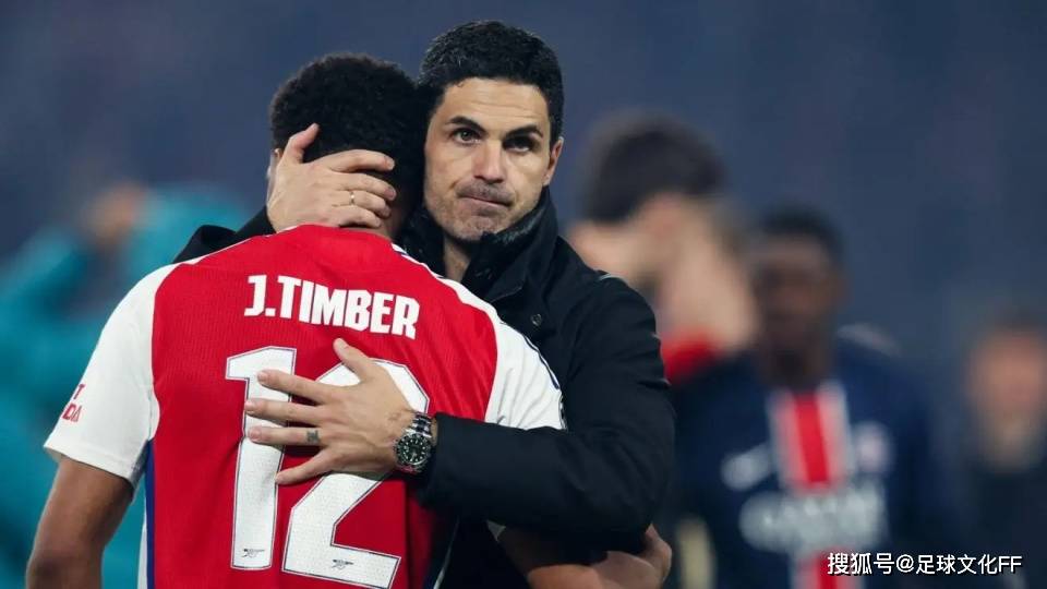 阿森纳输给巴黎圣日耳曼后,米克尔·阿尔特塔拥抱了朱里恩·廷伯。