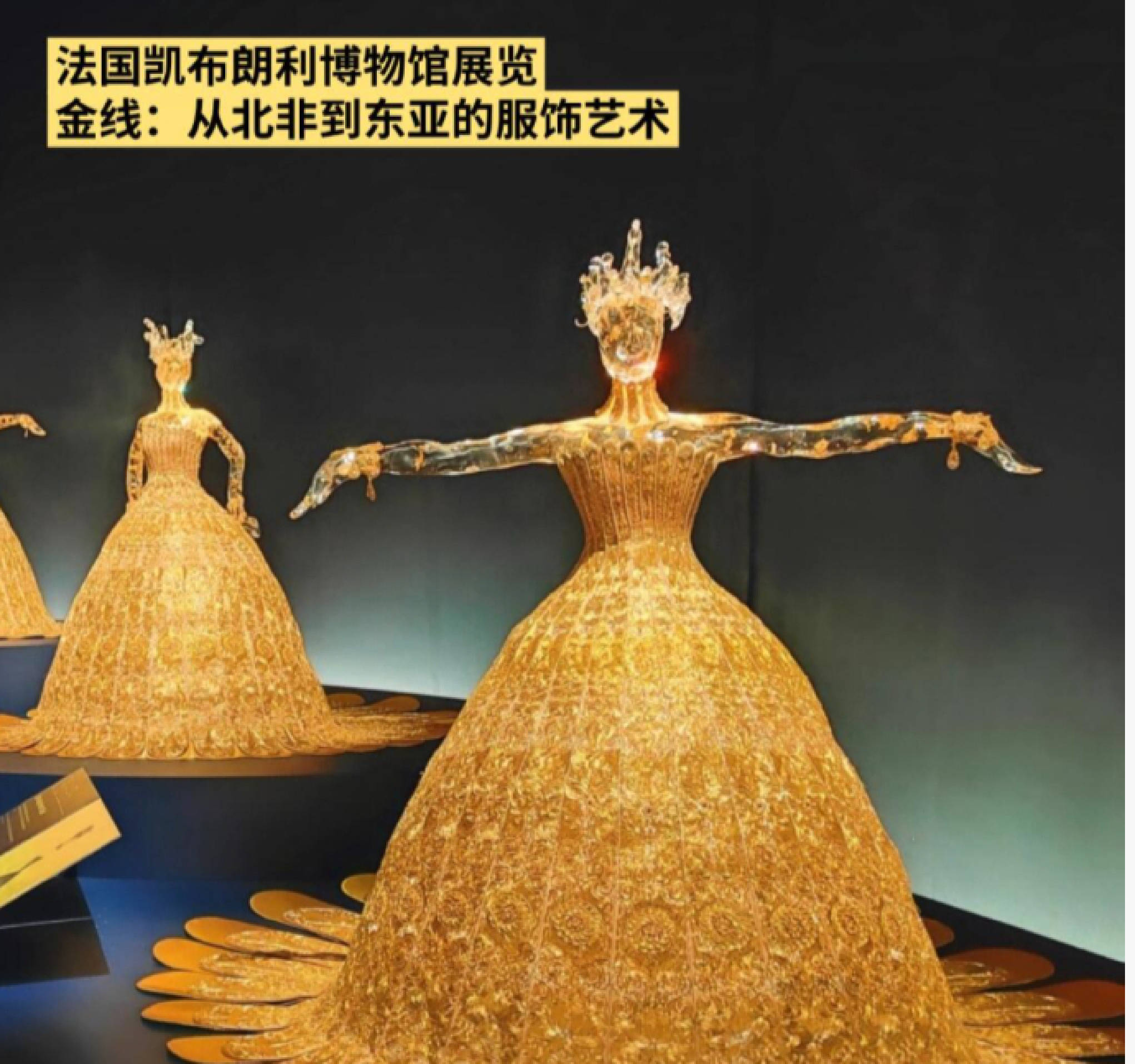 拟借展法国凯布朗利博物馆展览“金线:从北非到东亚的服饰艺术”的展品和内容,该展览通过讲述亚欧大陆和北非各国服饰艺术品使用黄金的悠久历史,展示了不同国家的服饰之美及文化交流,展出的展品中包含非洲马格里布地区、南亚、东南亚、东亚等地的金线服饰实物及材料,类型包括金丝、日常服饰、婚礼服饰、节庆服饰、刺绣布料等。