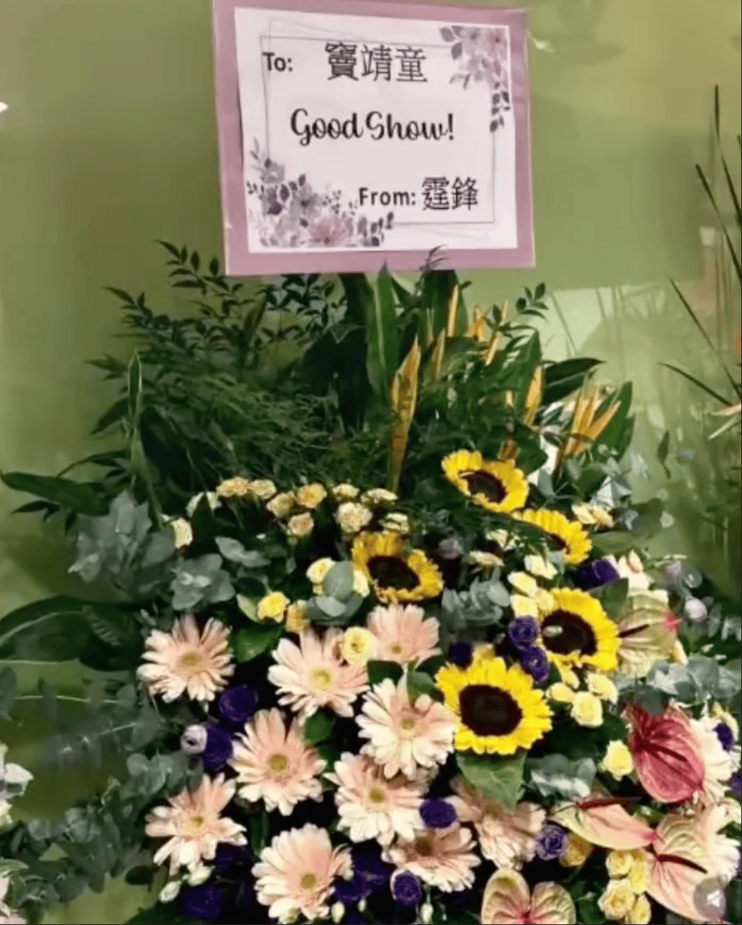搜狐娱乐迅 近日,窦靖童举办演唱会,谢霆锋贴心为其送上花篮。有网友发现,谢霆锋赠送的花篮祝福语为“Good Show”,署名仅用“霆锋”二字(省略姓氏)。这一细节与容祖儿等其他艺人使用全名的落款形成鲜明对比。
