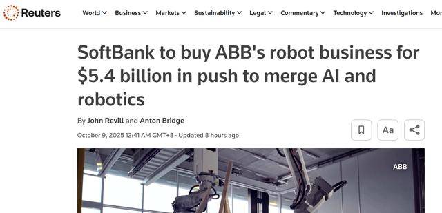 根据双方披露的信息,此次软银与 ABB 的交易预计将在2026年年中至年末期间完成。业界分析认为,软银此次加码工业机器人业务,既是对全球制造业智能化升级趋势的判断,也是其布局高增长科技领域的重要举措;而 ABB 调整业务战略,或将有助于其更聚焦核心业务板块,实现资源优化配置。(纯钧)