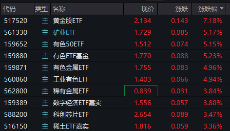 个股方面,西部超导涨超15%,云南铜业、锡业股份、西部矿业、紫金矿业、洛阳钼业等涨幅居前。
