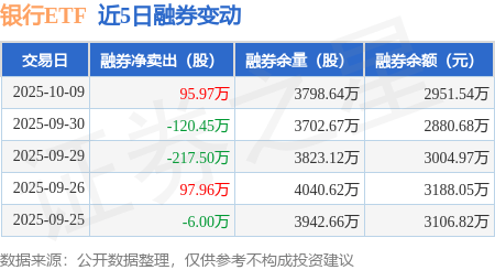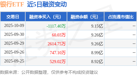 证券之星消息,10月9日,银行ETF(512800)融资买入1.37亿元,融资偿还1.48亿元,融资净卖出1117.4万元,融资余额9.15亿元,近20个交易日中有11个交易日出现融资净买入。