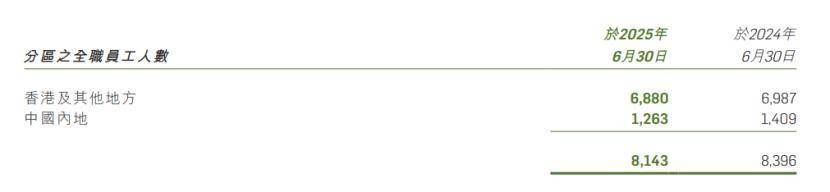恒生银行正在减员。于2025年6月30日,该行员工人数8143人,较上年同期减少了253人。
