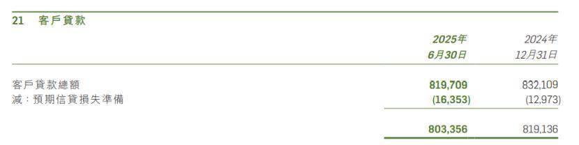 截至2025年上半年,恒生银行客户贷款总额为8197.09亿港元,较上年末减少1.49%。
