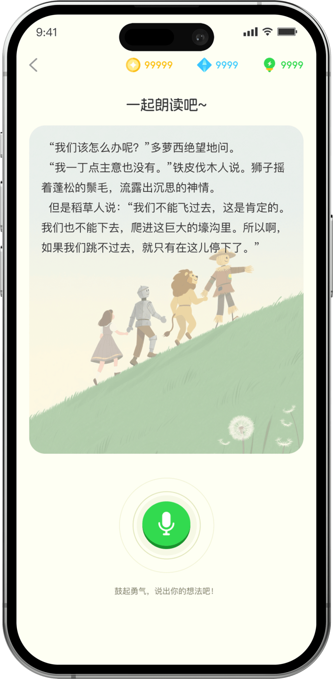 开口朗读: 阅读后,孩子需要朗读指定片段。我们的AI朗读测评会像一个极有耐心的伙伴,鼓励孩子大声读出来。