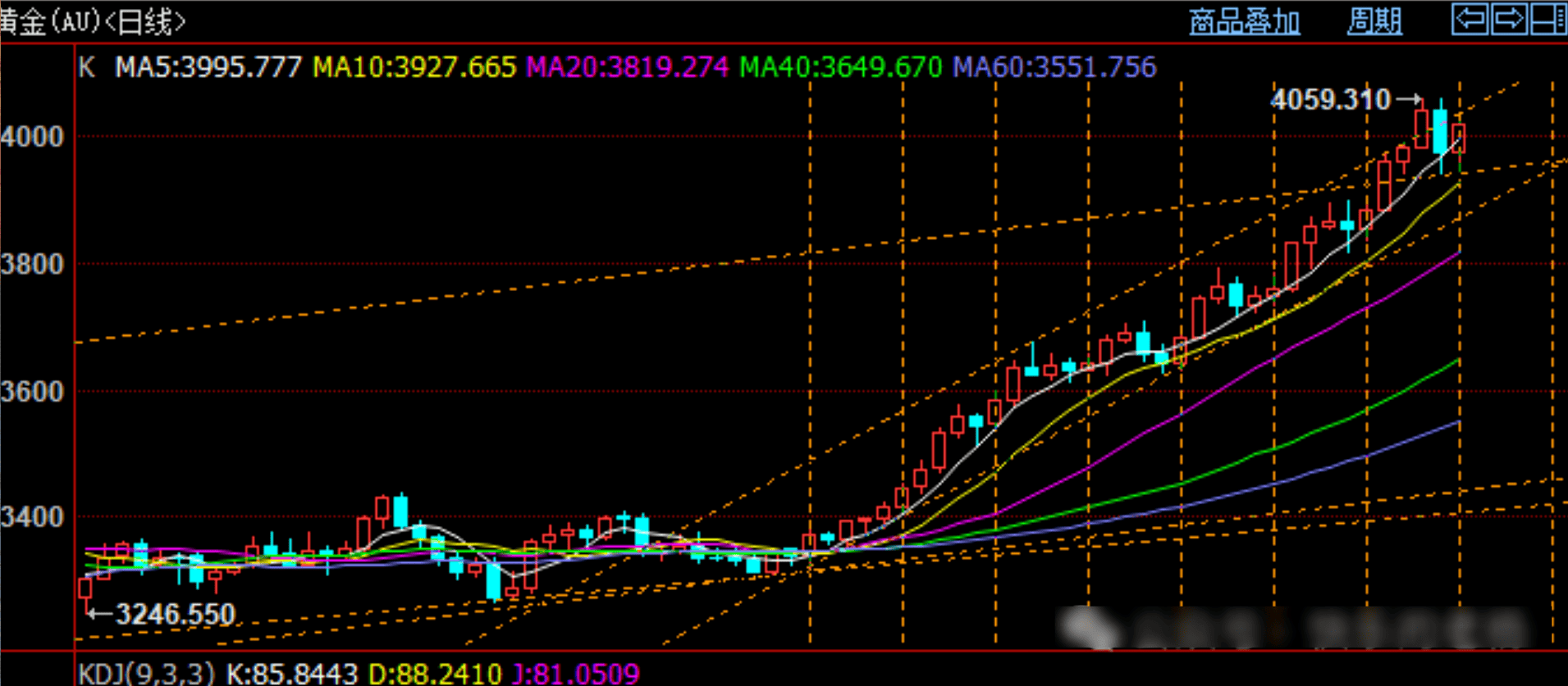 黄金在周四大跌之后,我们明确指出黄金下跌只是调整,待调整完毕继续上涨,继续新高;多头比我们预期的还要强势,我们预期10日线或者3311以来上涨趋势支撑止跌上涨,最终,周五黄金在周四低点及最后一波起涨点3940支撑下直接企稳,日内迎来大涨,日线以中阳线收盘。自此,周线成功8连阳,而周五也 实现了连续8周上涨。