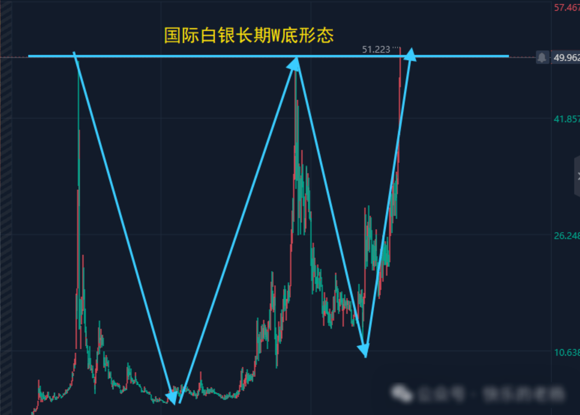 这预示着,历史双顶50美元的大门正式被多头踢开,接下来牛市浩浩荡荡奔赴100美元。不过,随着多头的推进,价格的走高,白银震仓会更惨烈。
