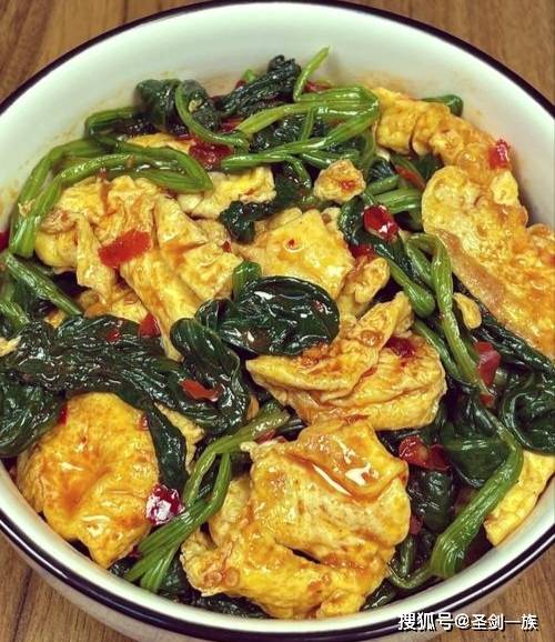 5. 倒入炒好的鸡蛋,与菠菜一起翻炒均匀,加入适量盐调味即可。