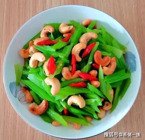 食材:芹菜200g、熟腰果50g、胡萝卜半根、木耳5g、蒜3瓣;需要盐1/4勺、糖1/2勺、生抽2勺。