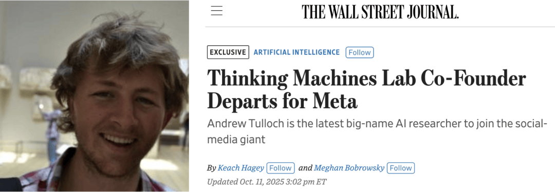 OpenAI前CTO Mira Murati创业公司Thinking Machines Lab证实,联创、首席架构师 Andrew Tulloch已经离职去了Meta。