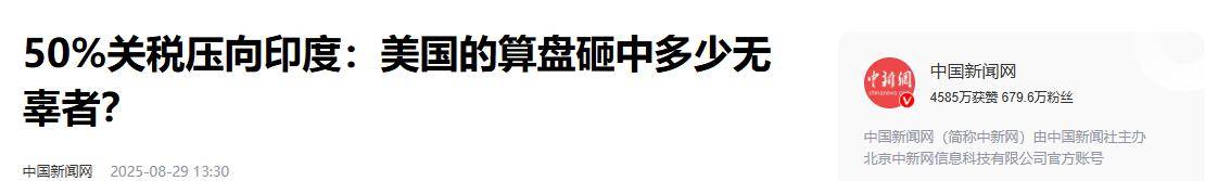 2. 《50%关税压向印度:美国的算盘砸中多少无辜者?》2025-08-29 13:30 | 来源:中国新闻网