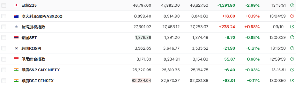 亚洲股指也急转直下,日经225指数跌幅扩大至3%。MSCI亚太指数下跌1%至218.82点。