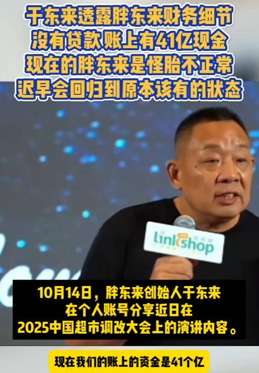 其中在谈及企业价值与规模时,于东来表示做企业要有社会责任,不是只满足自己家族的私利,不是为了体现自己的身价,而是要落实到员工的幸福上。企业不要去做盲目的扩张,并透露,胖东来目前没有贷款,账上有41亿资金。