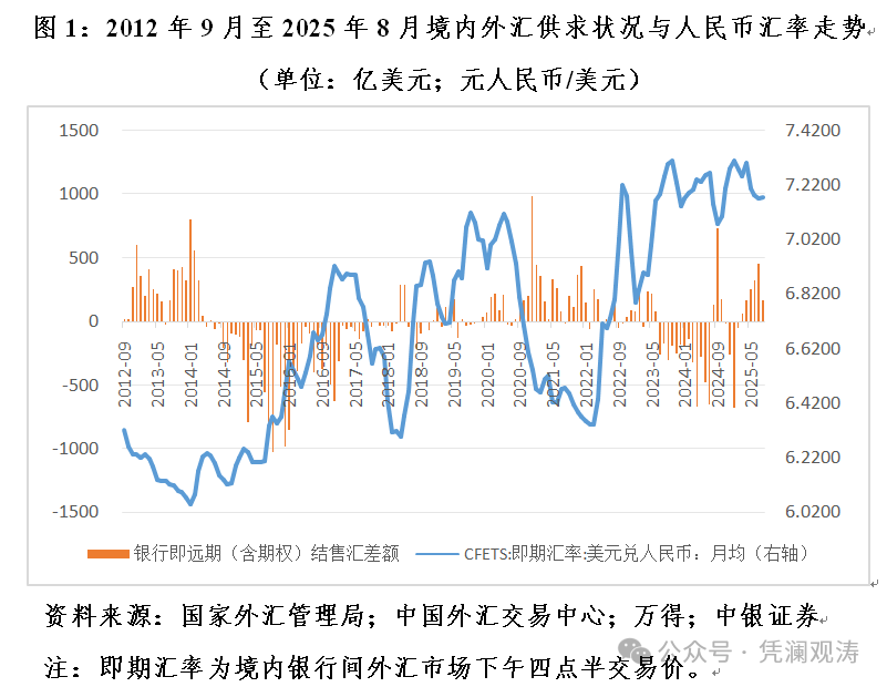 2023年7月至2025年2月,在中美经济周期和货币政策分化的背景下,境内外汇总体供不应求,人民币再度面临下行压力;
