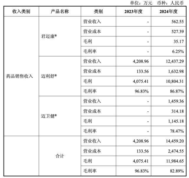 而销售药品方面,有媒体报道,2023年5月19日,迈威生物工作人员曾在上证e互动平台提到,“预计君迈康2023年达成销售收入约2.5亿元,预计迈利舒2023年销售金额不低于1.8亿元。”
