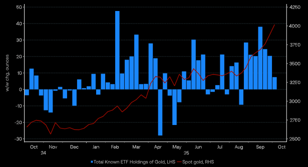 据澳新银行观察的数据显示,黄金ETF资金流入的"增量"实际上正在放缓,显示买盘动能边际减弱。
