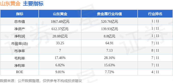 山东黄金2025年中报显示,公司主营收入567.66亿元,同比上升24.01%;归母净利润28.08亿元,同比上升102.98%;扣非净利润28.1亿元,同比上升98.74%;其中2025年第二季度,公司单季度主营收入308.3亿元,同比上升14.97%;单季度归母净利润17.82亿元,同比上升160.68%;单季度扣非净利润17.79亿元,同比上升152.72%;负债率63.11%,投资收益-3.63亿元,财务费用9.14亿元,毛利率17.46%。山东黄金(600547)主营业务:有色金属开采、冶炼、加工、贵金属投资、股权投资及资产管理。