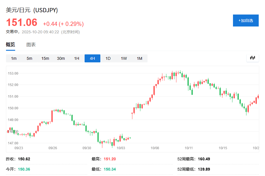 在日股拉升之际,日元显著走软,盘中最低触及151.2,此前有报道称高市早苗已获得关键政治支持,几乎确定将成为日本下一任首相。分析认为,这位财政与货币刺激政策的倡导者上台预期令市场重启"高市交易",即做多股票、做空日元的策略。
