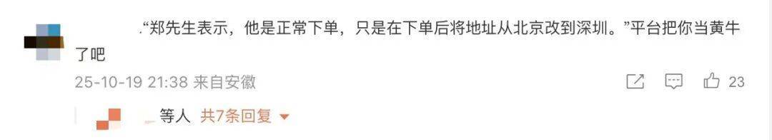 记者注意到,郑先生在此事发到社交媒体吐槽时,有网友表示,自己也遇到了一样的情况,正在投诉中。还有网友表示,自己买白银也遇到过这样的,平台和商家“联手”,只要涨价就不发货。“我当时买了耳钉,后面涨价了,不给发,投诉后直接上演了一场订单消失术,没保存记录,最后不了了之!”还有网友称。