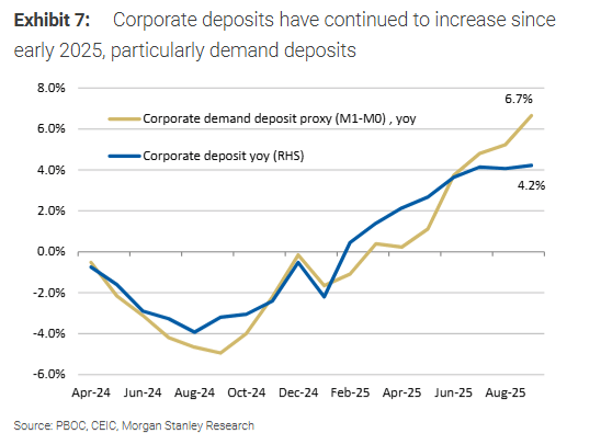 (自2025年初以来,企业存款持续增加,尤其是活期存款)