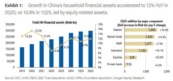 (2025年第二季度,中国家庭金融资产的年增长率加快至12%,而第一季度这一比例为10.8%)