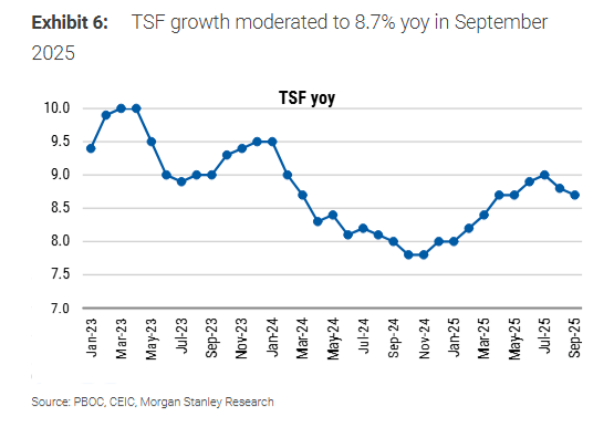 (9月份,社会融资规模的增长率放缓至8.7%)