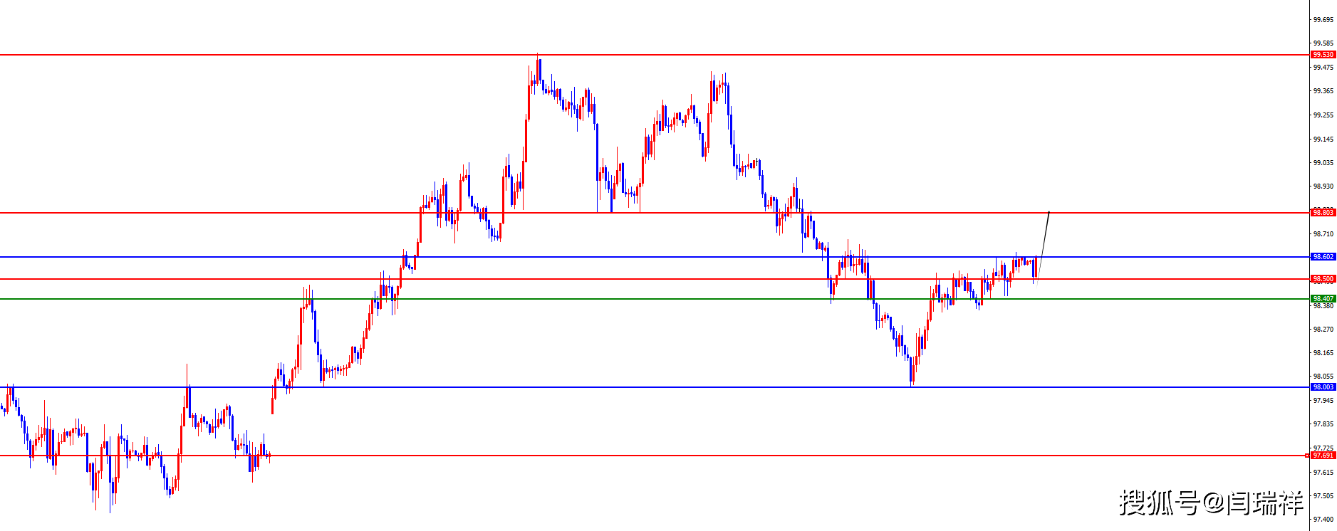 从多周期分析,周线价格经过前期持续震荡后于上周进行站稳,上周价格进行回踩周线支撑位置下跌,目前周线支撑于98区域,后续关注进一步中期多头(需要注意缺口位置)。从日线级别看,随着时间的推移目前日线阻力于98.60区域,此位置是波段走势的关键,近期价格在此位置上下盘整,短线操作需要结合小周期。从四小时上看,在近期波动过程中我们发现价格依托四小时关键位置运行,针对昨日价格突破四小时阻力,则此位置变成关键支撑,位置上暂时关注98.40-50区间,后续依托此区域进一步看上涨。一小时上看目前价格同样偏多,所以暂时先关注多头运行,上方暂时关注98.80区域阻力。
