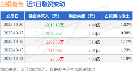 白银有色:10月20日融券净卖出14.67万股,连续3日累计净卖出30.79万股