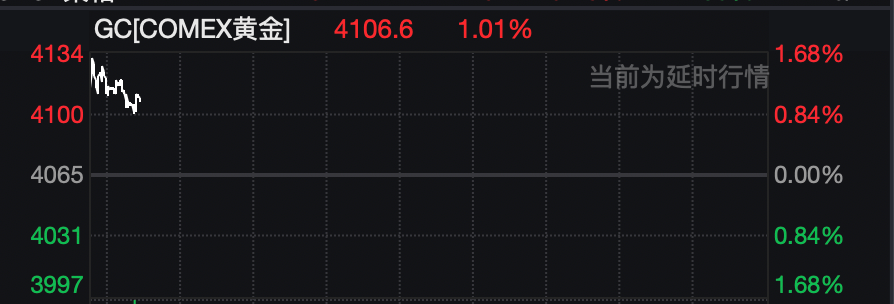 黄金方面,在连续两天回调后,10月23日早盘出现高开。截至发稿,COMEX黄金涨约1%,最新报4106.6美元/盎司。