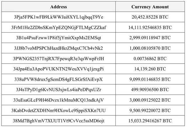 陈志洗钱后购买的虚拟货币地址(部分)。图片来自美国司法部门公开的起诉书