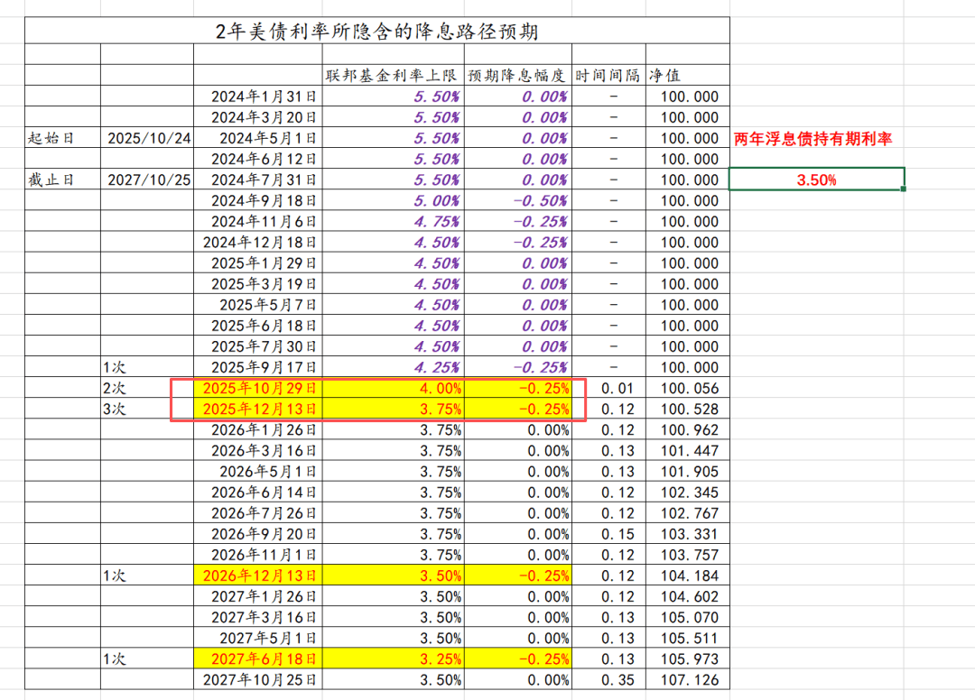 如上图所示,根据美联储9月议息会议的 点阵图,截至今年年底,还有两次降息,每次25bp。