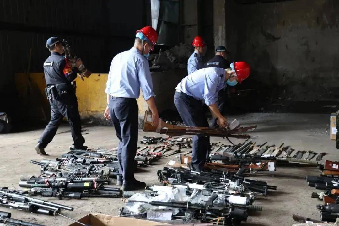 ▲公安机关销毁非法枪支