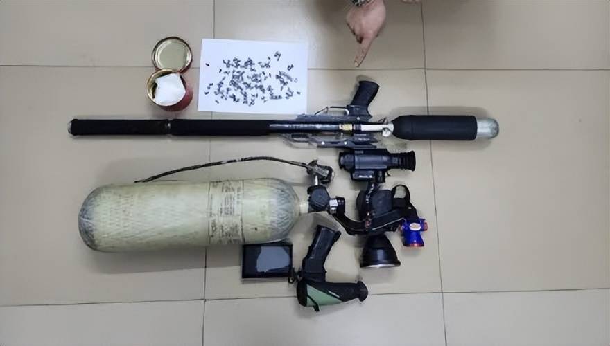 ▲警方查获的带有热成像瞄具的土制气枪