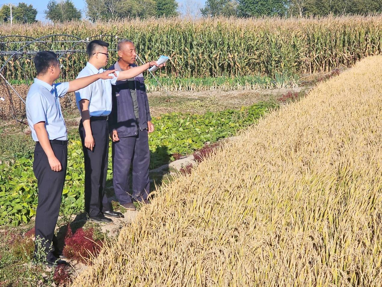 建设银行泰来支行“张富清金融服务队”向农户了解水稻收成情况。中国建设银行黑龙江省分行供图