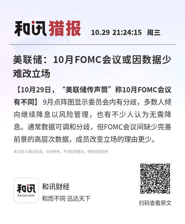 【10月29日,“美联储传声筒”称10月FOMC会议有不同】9月点阵图显示委员会内有分歧,多数人倾向继续降息以风险管理,也有不少人认为无需降息。通常数据可调和分歧,但FOMC会议间缺少完善前景的高层次数据,成员改变立场的理由更少。