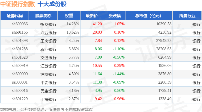 证券之星消息,10月30日,中证银行(399986)指数报收于7535.03点,涨0.04%,成交354.95亿元,换手率0.33%。当日该指数成份股中,上涨的有17家,青岛银行以3.8%的涨幅领涨,下跌的有20家,浦发银行以1.44%的跌幅领跌。