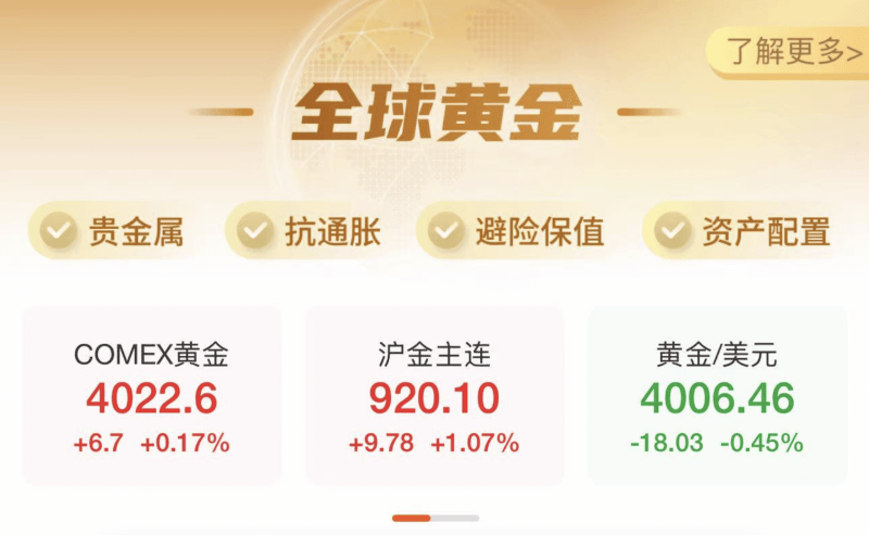 10月31日,现货黄金一度跌破4000美元/盎司,随后跌幅有所缩小,截至发稿时,现货黄金重新回到4000美元上方,报4006.46%,跌0.45%。