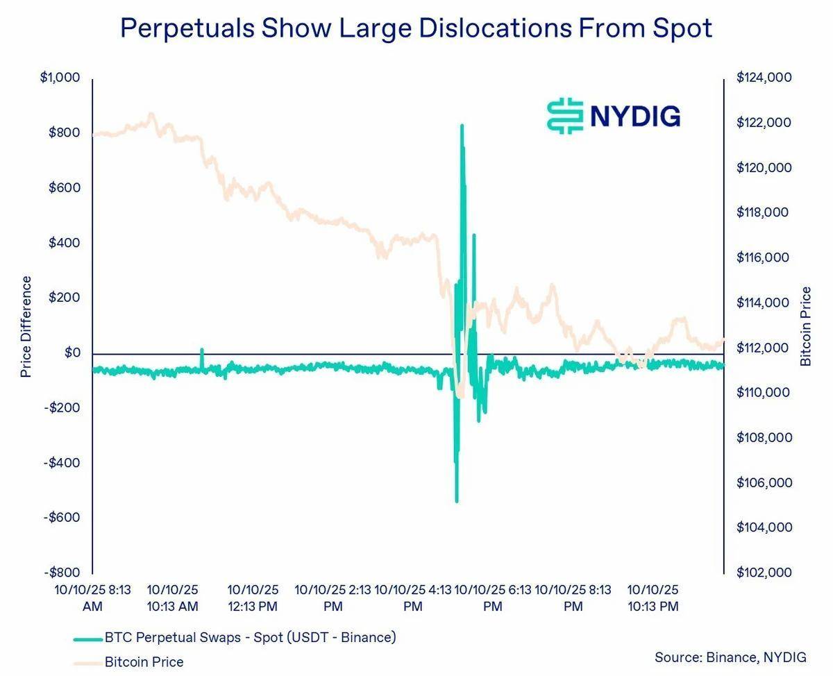 随着去杠杆浪潮层层传导,加密市场的压力迹象开始显现。原本长期窄幅波动的比特币价差急剧扩大;永续合约相对现货价格剧烈摆动;美国市场交易的比特币较离岸市场出现溢价。