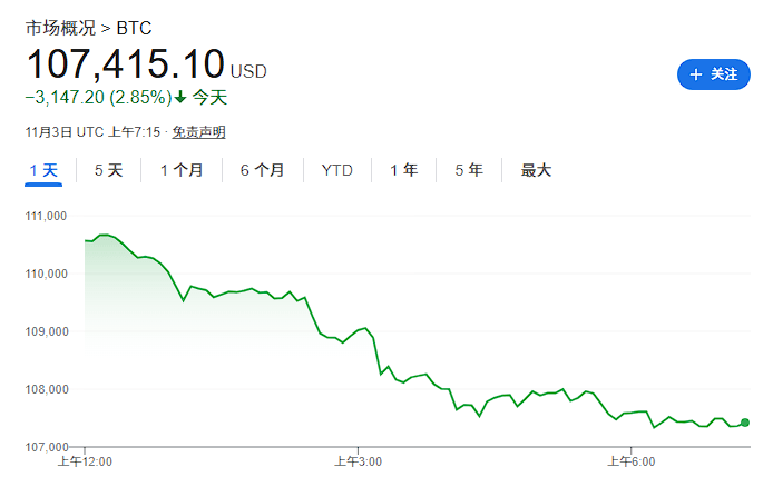 加密货币市场继续走弱,比特币跌近3%,逼近10.7万美元,以太坊下跌4%至3710美元。,终结2018年以来在10月上涨的纪录。