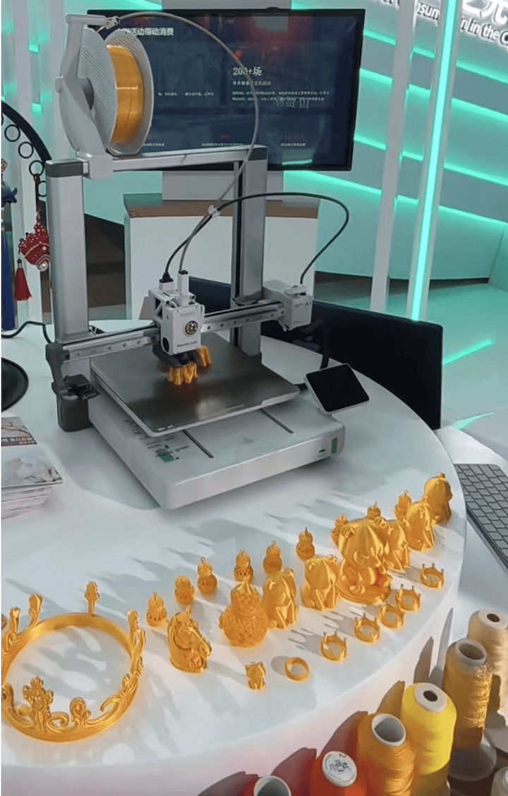 为进一步推动服务与体验升级,菜百股份在本届进博会展示了新引入的AI设计和3D打印设备,该设备可实现从“文生图”到“图生实物”的快速转化,让设计构想能够迅速可视化、实体化,显著提升了设计研发效率与消费体验。