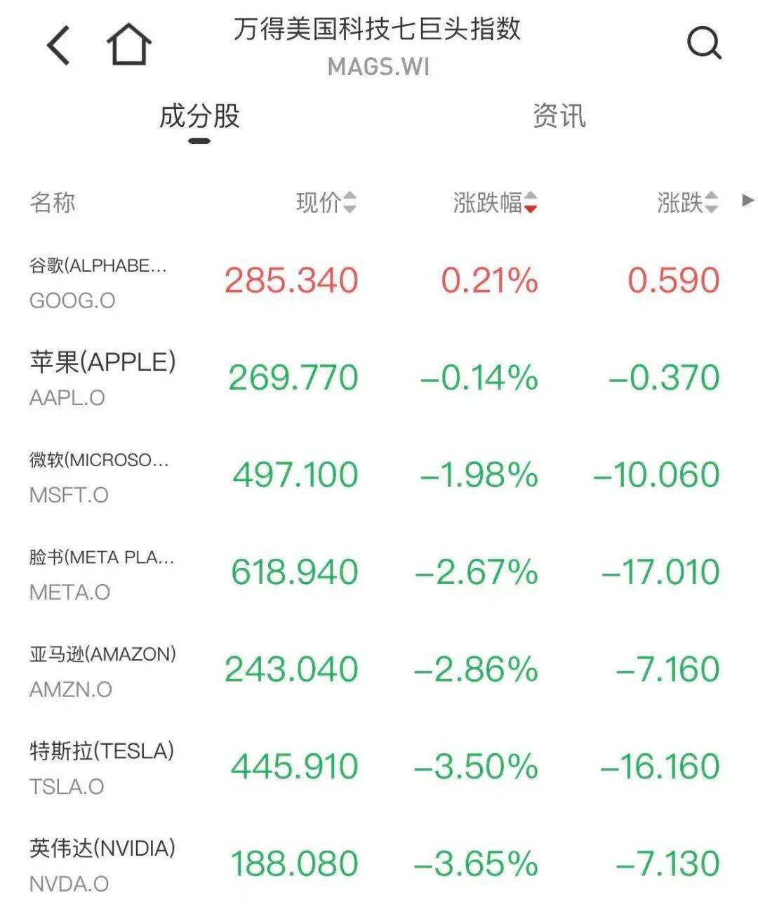 美股大型科技股多数下跌,万得美国科技七巨头指数下跌1.91%。个股方面,英伟达跌3.65%,特斯拉跌3.5%,亚马逊、Meta跌超2%,微软跌近2%。其中,微软连续七个交易日下跌,创2022年以来最长连跌天数。