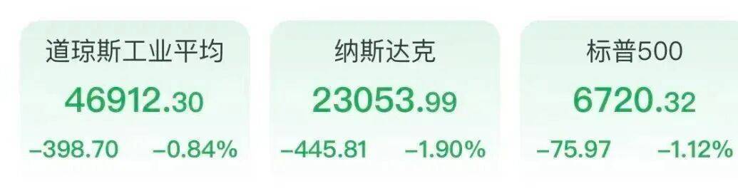 当地时间11月6日,美股三大指数集体收跌,纳指跌1.9%,标普500指数跌1.12%,道指跌0.84%。