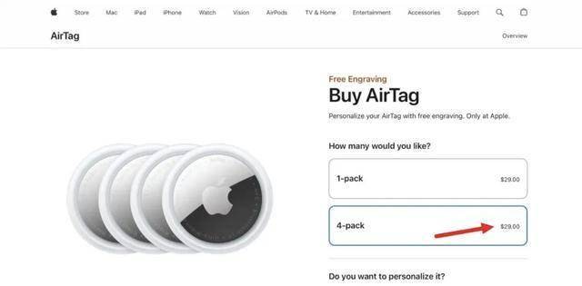 近日,苹果美国官网发生罕见的价格乌龙事件:原价99美元的四件装AirTag,被错误标价为29美元,与单件装价格相同,相当于“买一送三”。