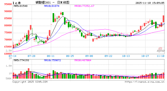 新湖点评:11月10日,锂价再度大幅增仓上行,日内涨超6%,突破前期压力位,主因储能需求超预期因素再度发酵所致。此外,近期股票市场锂电产业链表现强劲,部分股票资金进入碳酸锂期货市场,拉涨锂价。