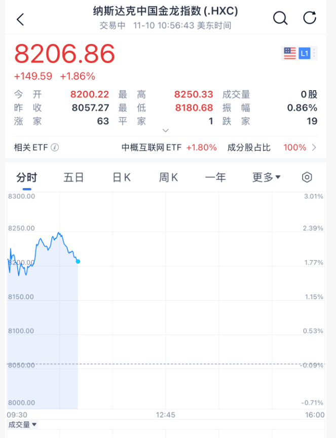 11月10日晚间,美股三大指数上涨,道指微涨,科技股集体暴涨,纳斯达克指数一度涨2%,标普500指数涨近1%。