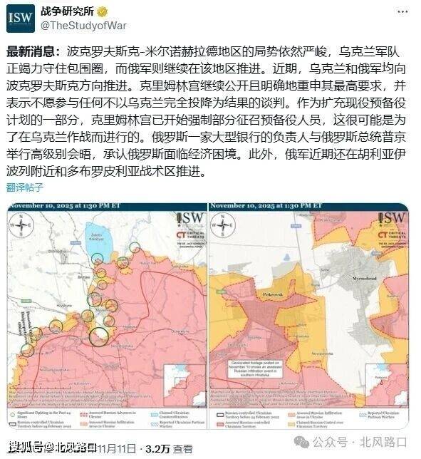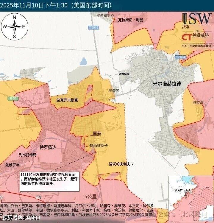 战争研究所(ISW)2025年11月10日波克罗夫斯克-米尔诺赫拉德地图