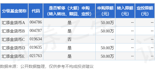 证券之星消息,11月12日渤海汇金证券资产管理有限公司发布《渤海汇金汇添金货币市场基金调整代销机构及直销服务大额申购(含大额定期定额投资)业务金额限额的公告》。公告中提示,为维护现有基金份额持有人的利益,保证基金的平稳运作,自2025年11月14日起渤海汇金汇添金货币市场基金调整代销机构及直销服务大额申购(含大额定期定额投资)业务金额限额,申购、定投上限金额为50.0万元,下属分级基金调整明细如下: